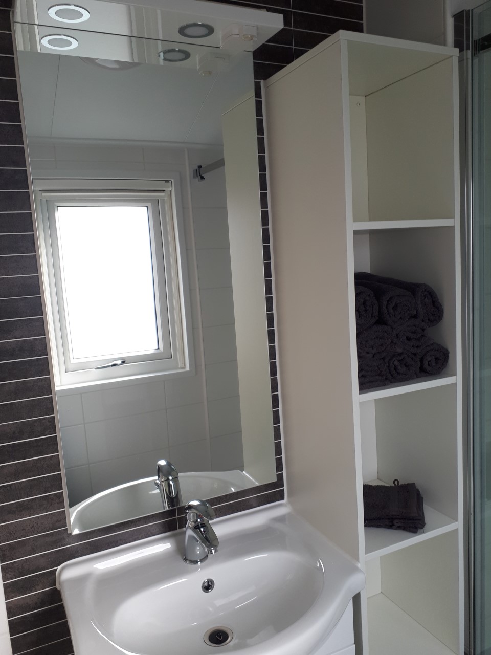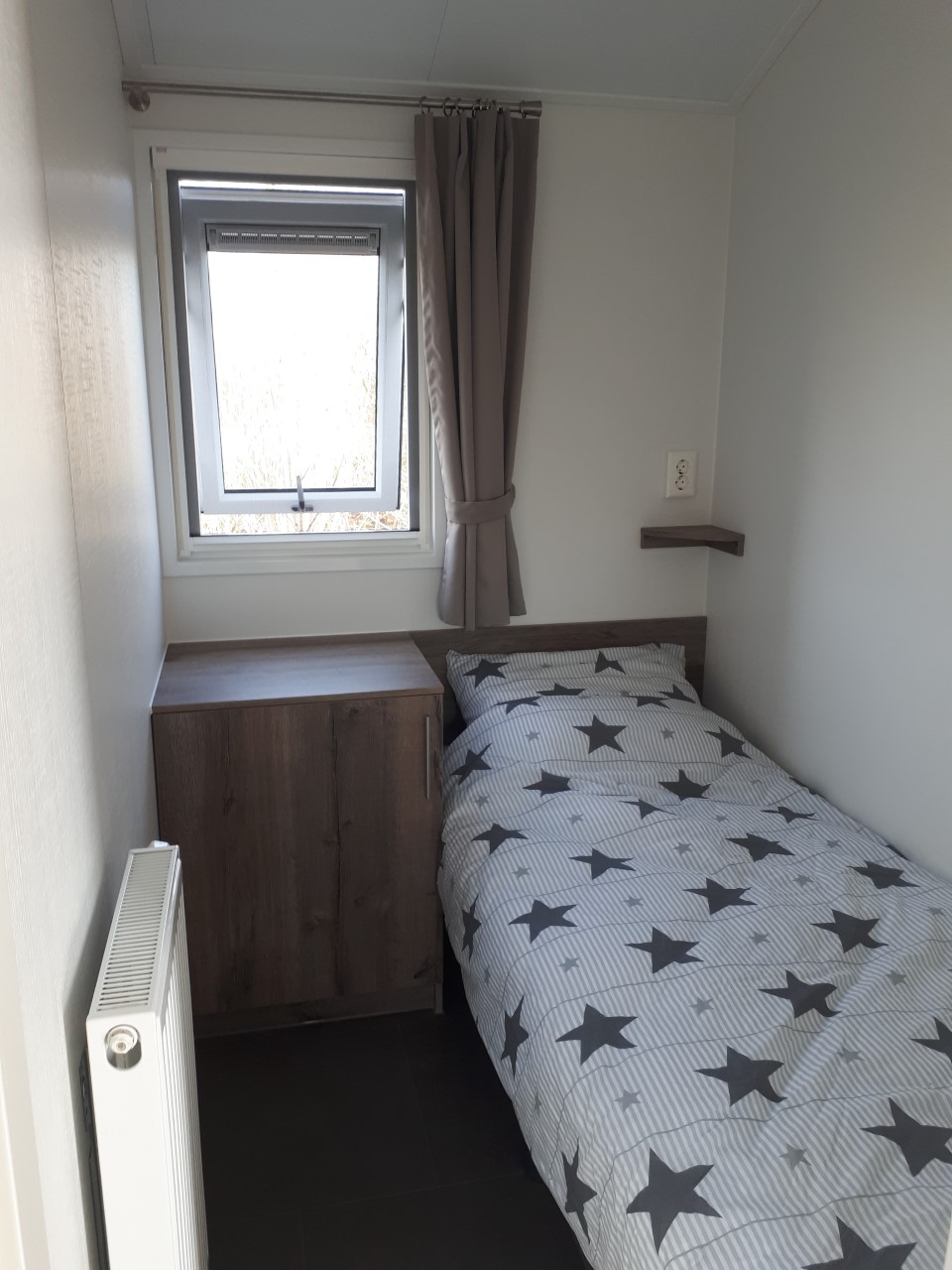 Het chalet is volledig nieuw, ruim (11,5 x 4,3 m), modern ingericht en geschikt voor vier personen (maximaal 2 volwassenen).